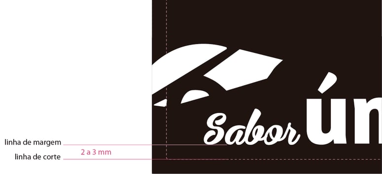 Quando imagens e textos não vão para além do cortante devem ficar a uma distância mínima de 3mm da borda do papel. Por vezes existem pequenas oscilações no corte, logo quando a margem é muita reduzida serão mais evidentes.